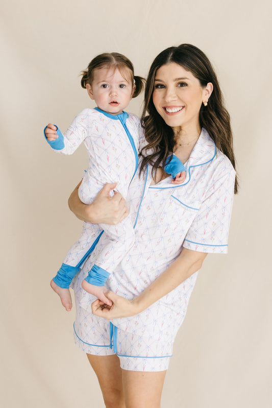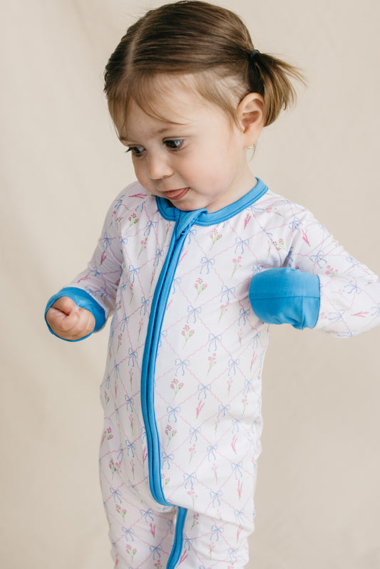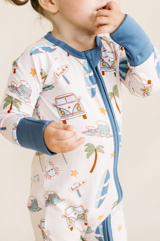 Our Sunday Zippy Rompers feature two way zippers for easy diapers changes....